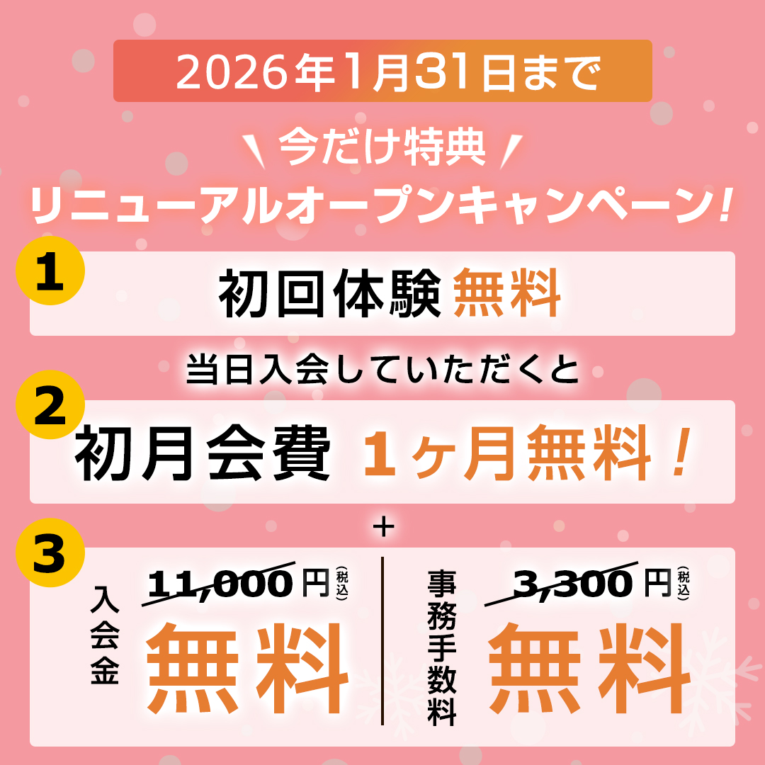 【期間限定】ニューアルオープンする 3スタジオで入会キャンペーンを実施中