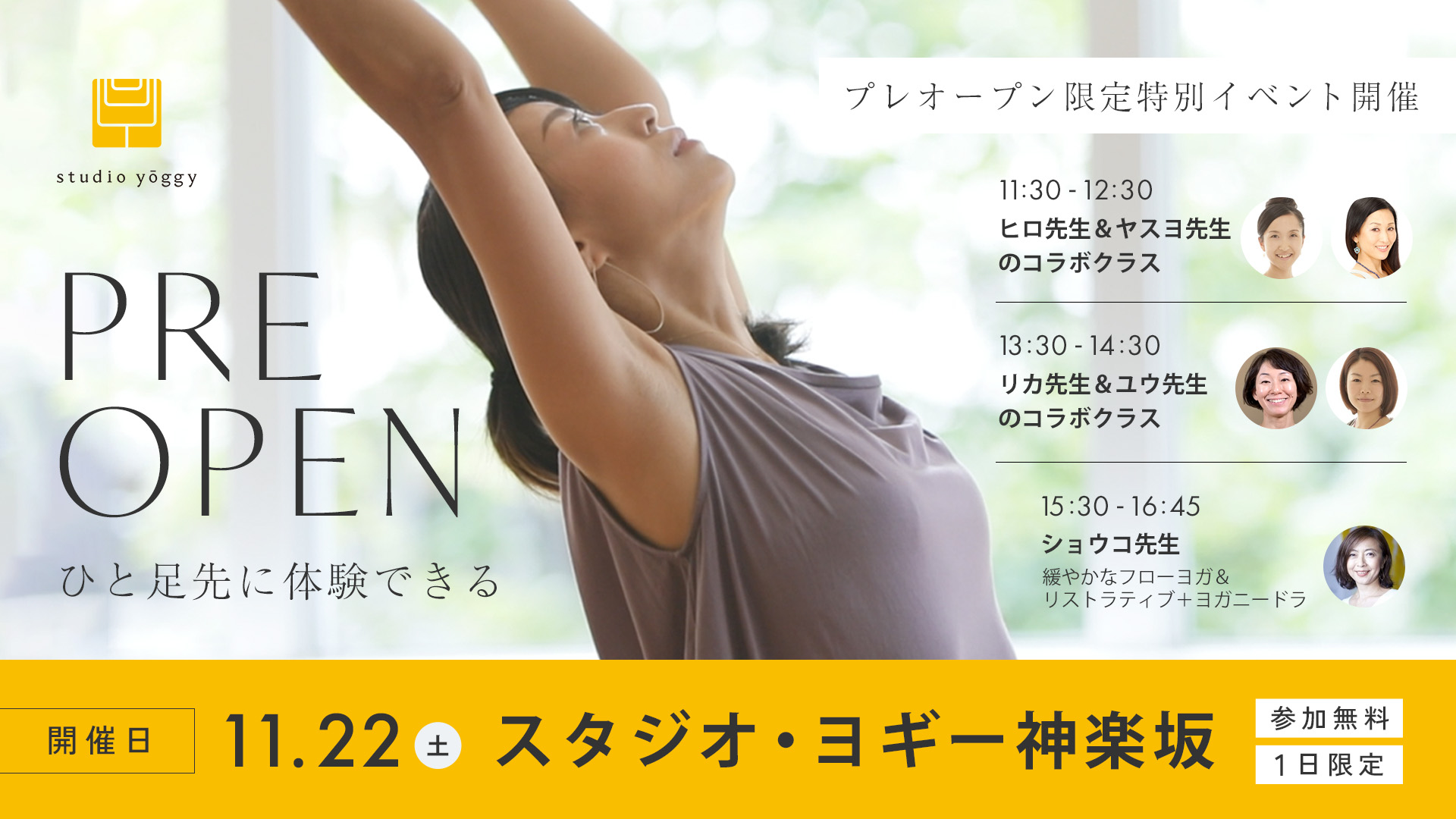 2025年11月、神楽坂スタジオ、再開! 2025年11月06日 \スタジオ再開決定します!/ 11/22(土)無料クラス実施! ▶詳しいクラス内容や予約はこちらから 11/23(日)~11/31(日)はフリーパス3,300円でクラス受け放題! ▶クラススケジュールはこちらから ▶(ご予約、フリーパス販売については後日発表) 12月、いよいよグランドオープン! ▶クラススケジュールはこちらから ▶(ご予約、フリーパス販売については後日発表)