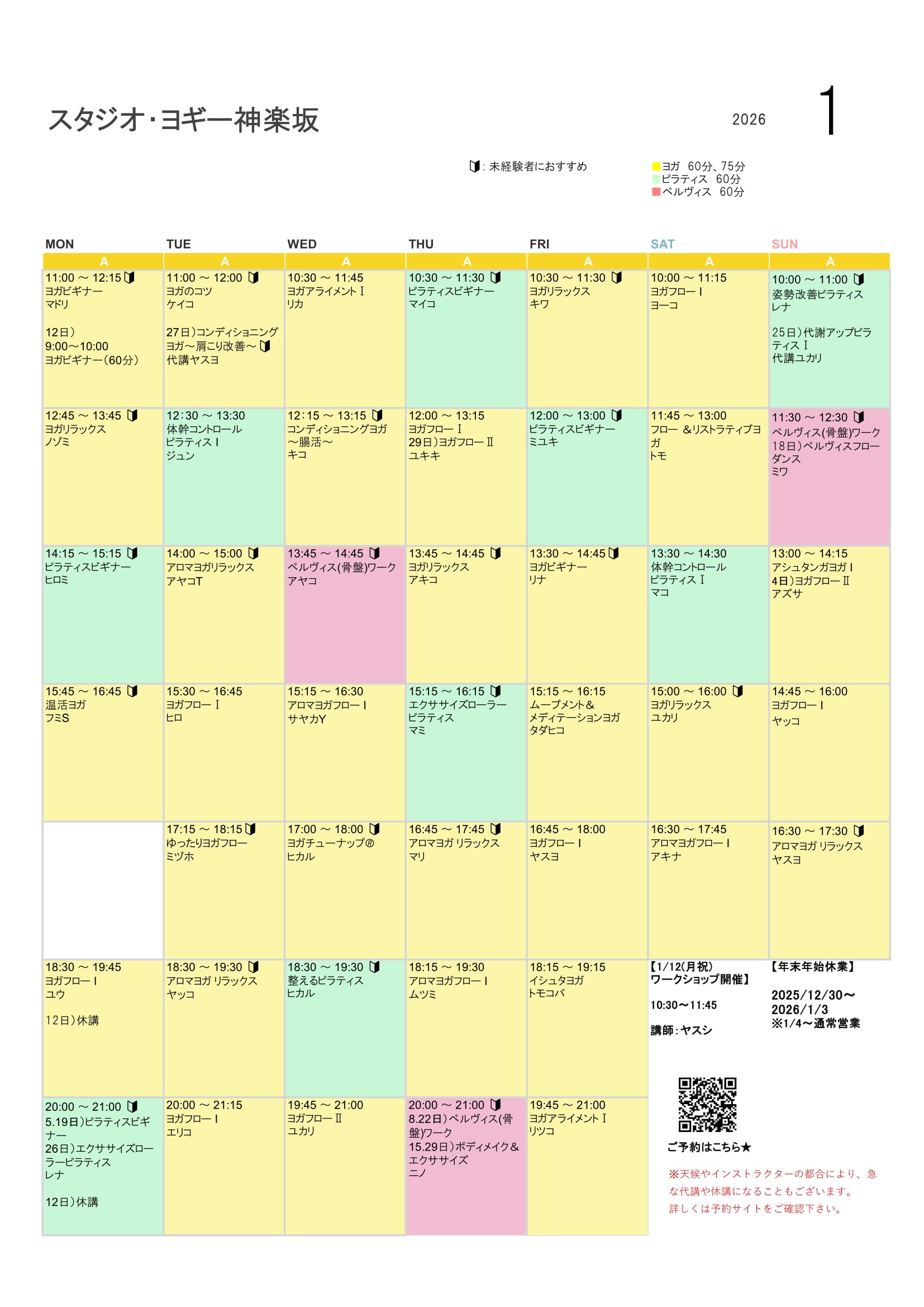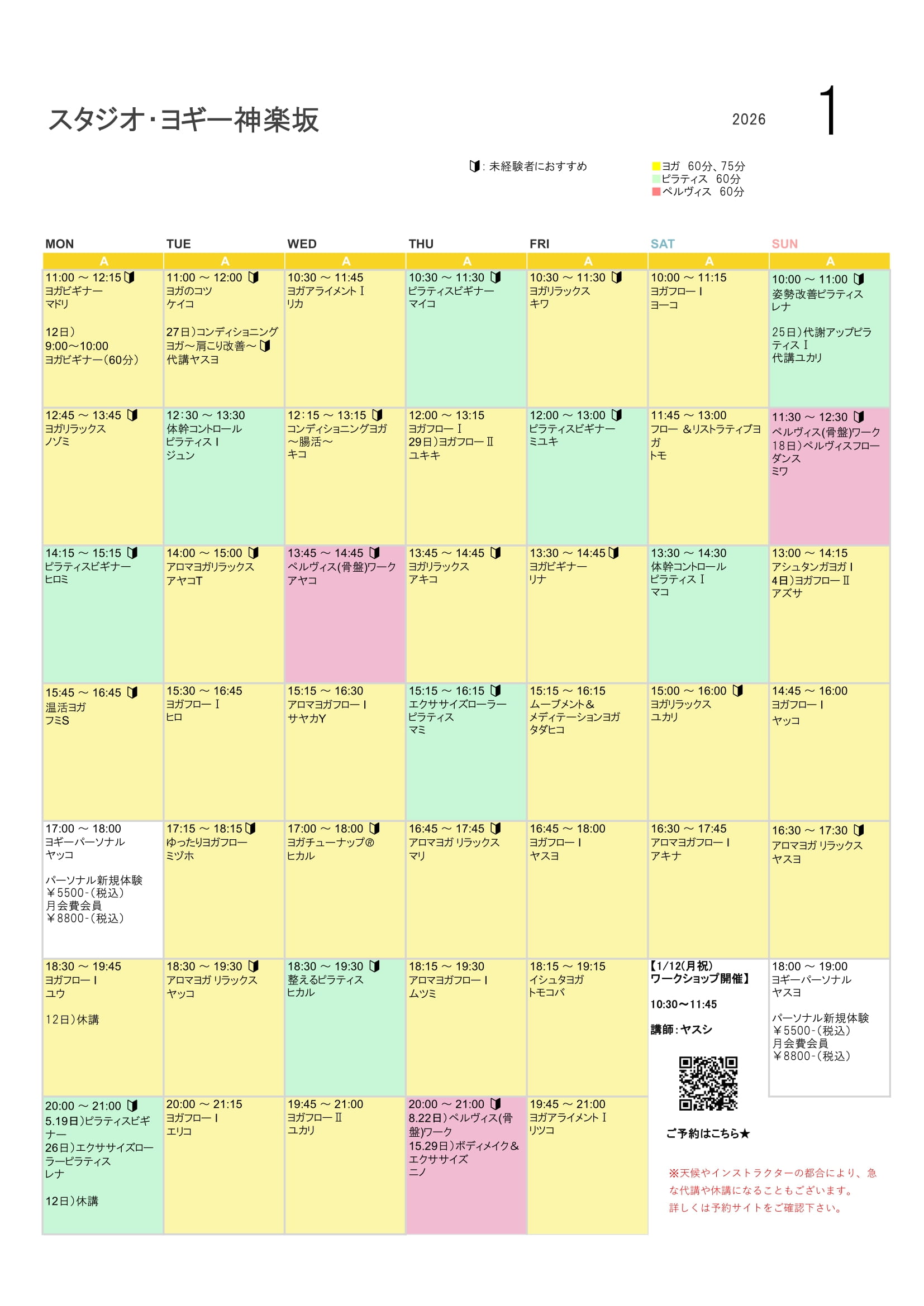 ※天候や、インストラクターの都合により急な代講や休講になることもございます。