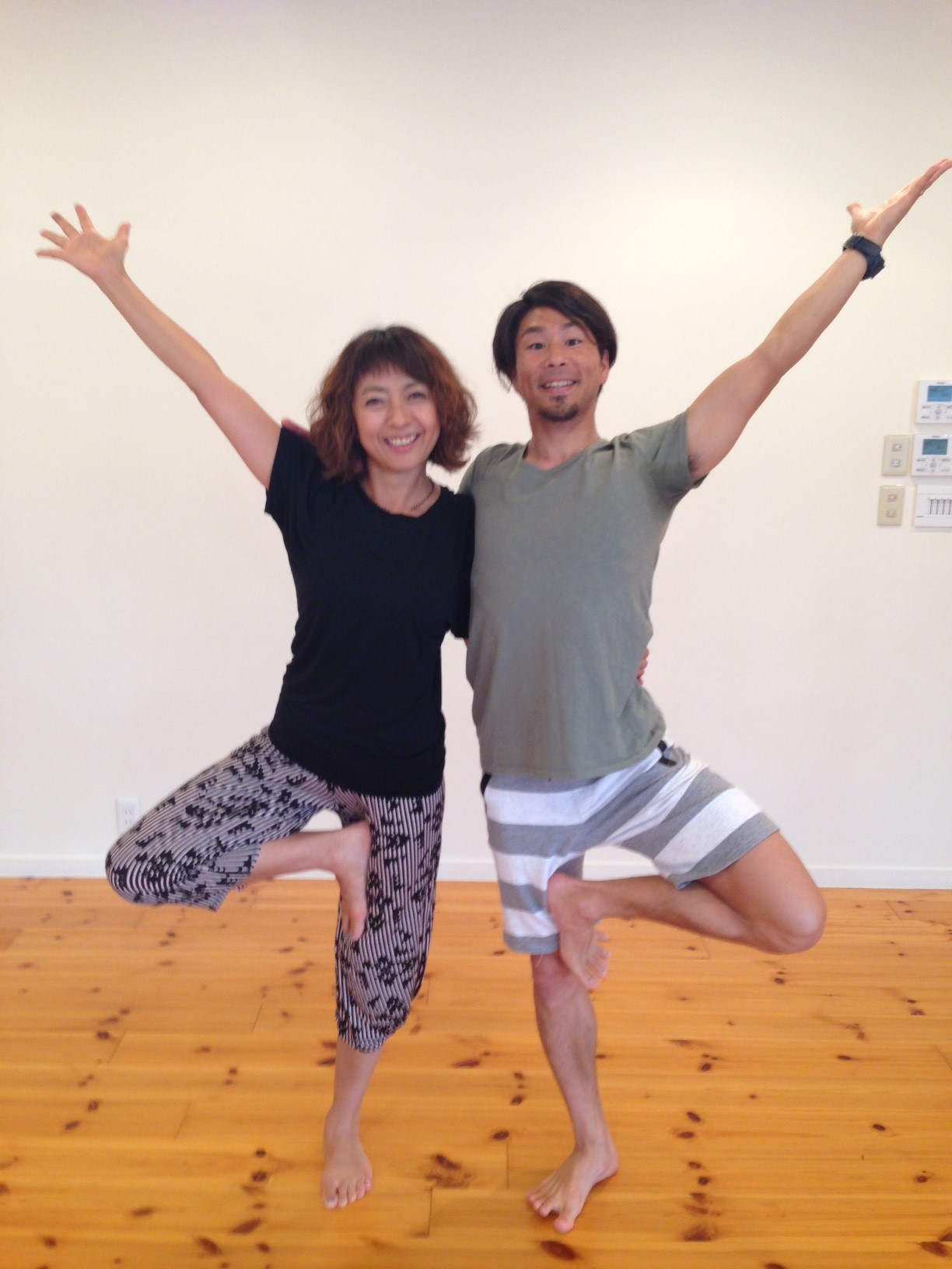 クラスでスッキリした後、ショウコ先生とマサ先生でハイ・チーズ!